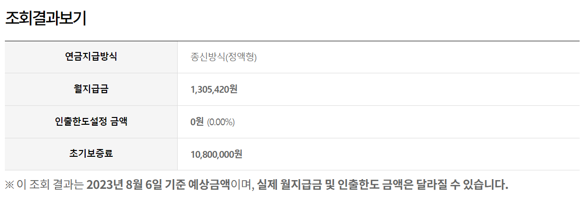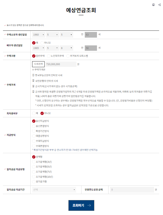 주택연금 수령액 계산